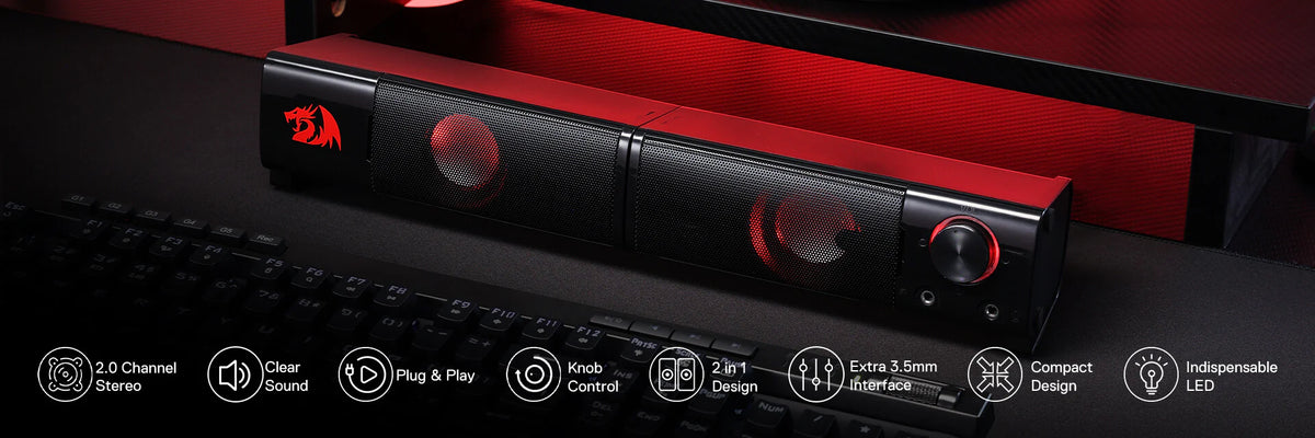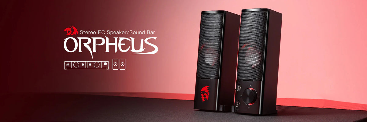 Refurbished ORPHEUS GS550 - 2.0 Channel Stereo Wired Desktop Computer Sound Bar with Compact Maneuverable Size and Red Backlight