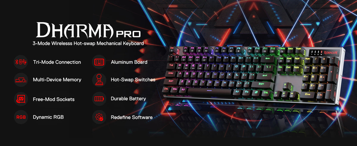 Refurbished Dharma Pro K556 Pro - 104 Keys Bluetooth+2.4Ghz+Wired Mechanical Keyboard (Quiet Linear Red Switch)
