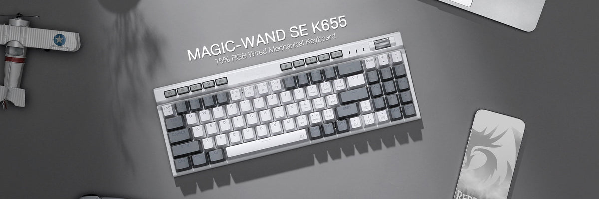 Refurbished Magicwand SE K655 75% Wired Mechanical Keyboard White and Grey (Quiet Linear Red Switch)