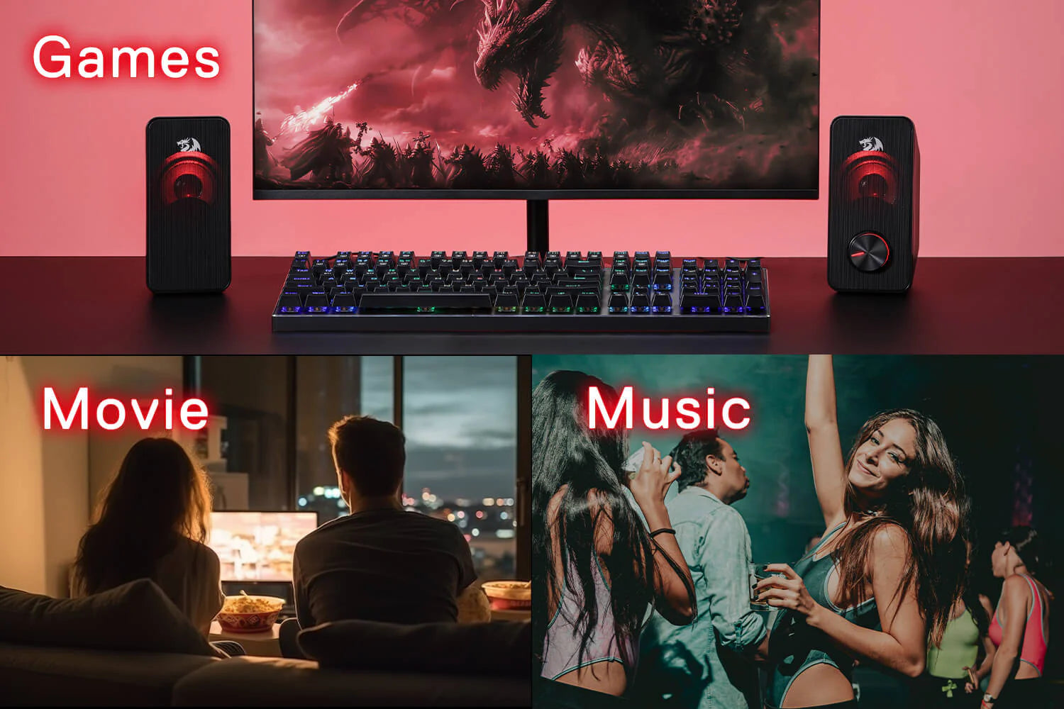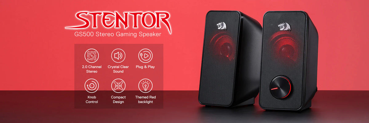 Refurbished STENTOR GS500 - 2.0 Channel Stereo Desktop Wired Gaming Computer Speaker with Red Backlight