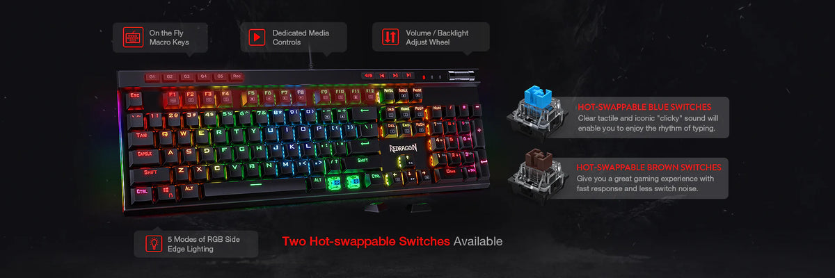 Refurbished Vata K580 - 104 Anti Ghosting Keys Wired Mechanical Keyboard (Blue Switch)
