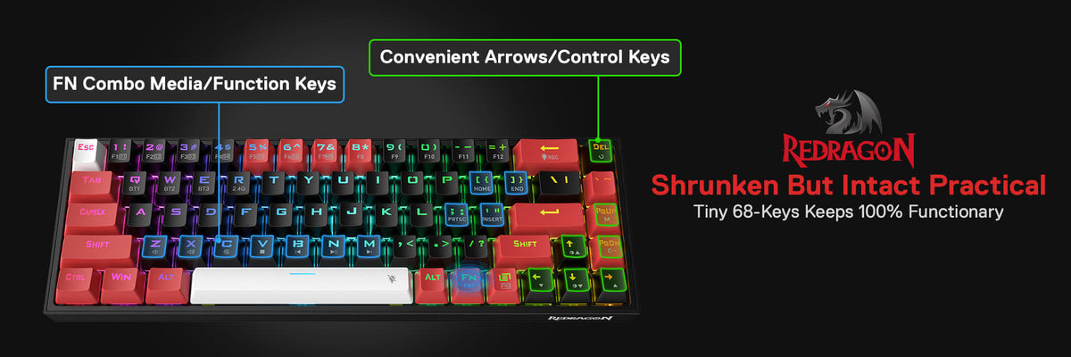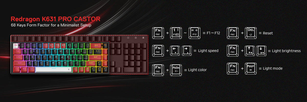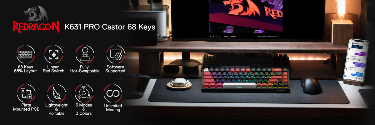 CASTOR K631 PRO - 65% Bluetooth + 2.4Ghz Wireless + Wired RGB Mechanical Keyboard (Red Switch)